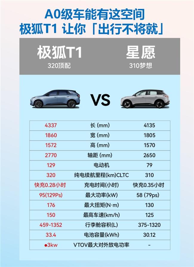 续航能力是衡量一款纯电车优劣的关键指标。极狐T1拥有425km的续航里程,而吉利星愿310梦想版仅为310km。这多出来的115km续航,对于消费者的日常使用来说意义重大。对于上班族而言,极狐T1的续航能够满足他们一周的通勤需求,减少了频繁充电的麻烦,让生活更加便捷高效。在周末或节假日,驾驶者还可以开着极狐T1进行短途旅行,无需担心电量不足的问题,尽情享受旅途的美好。